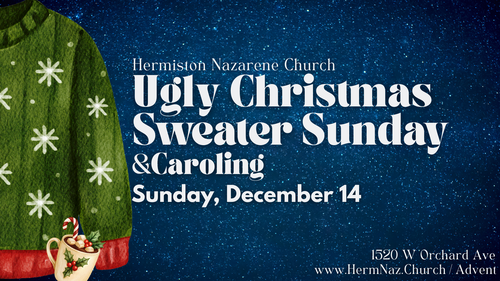 Wear your ugly Christmas sweater to church at 10:30am. Come laugh as we celebrate Advent.