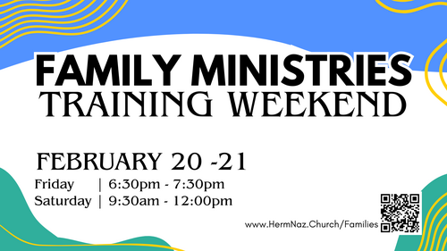 If you feel God calling you to assist with family ministries, we invite you to attend our training weekend on February 20th-21st. The first evening will feature a brief Q&A session, followed by comprehensive training the following morning. We'll have all the info and an application packet to help you determine if this is where God would have you to serve.