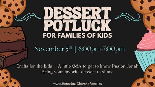 Come meet Pastor Jonah and eat desserts! We’ll do a Q&A time, have craft activities for the kids, and get to meet each other. Please bring a dessert or treat to share.